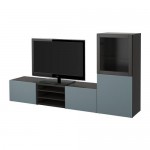 БЕСТО Шкаф для ТВ, комбин/стеклян дверцы - черно-коричневый/Вальвикен серо-бирюзовый, прозрачное стекло, направляющие ящика,нажимные