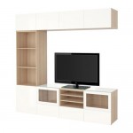 БЕСТО Шкаф для ТВ, комбин/стеклян дверцы - под беленый дуб/Сельсвикен глянцевый/белый прозрачное стекло, направляющие ящика,нажимные
