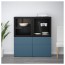 БЕСТО Комбинация д/хранения+стекл дверц - черно-коричневый Вальвикен/темно-синий прозрачное стекло, направляющие ящика,нажимные