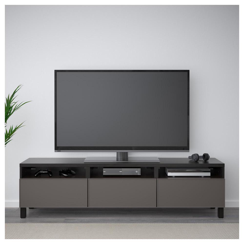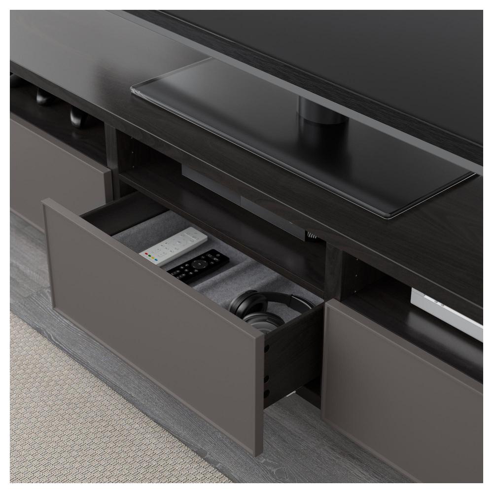БЕСТО Тумба д/ТВ с ящиками - черно-коричневый/Грундсвикен темно-серый, направляющие ящика,нажимные