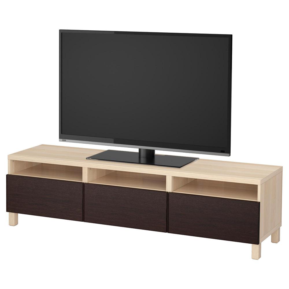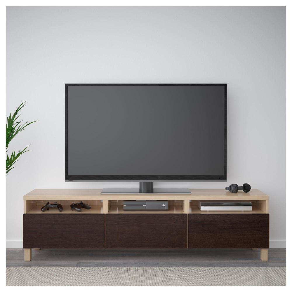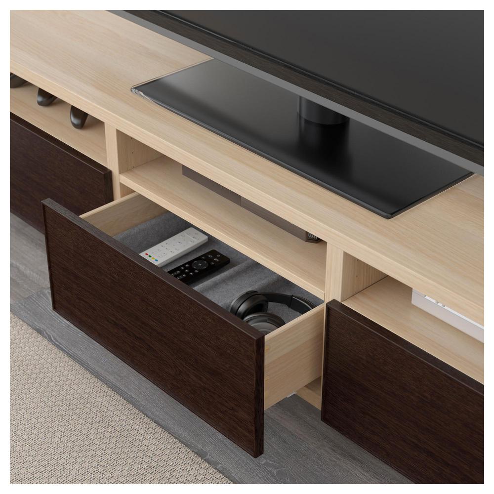 БЕСТО Тумба д/ТВ с ящиками - под беленый дуб/Инвикен черно-коричневый, направляющие ящика, плавно закр