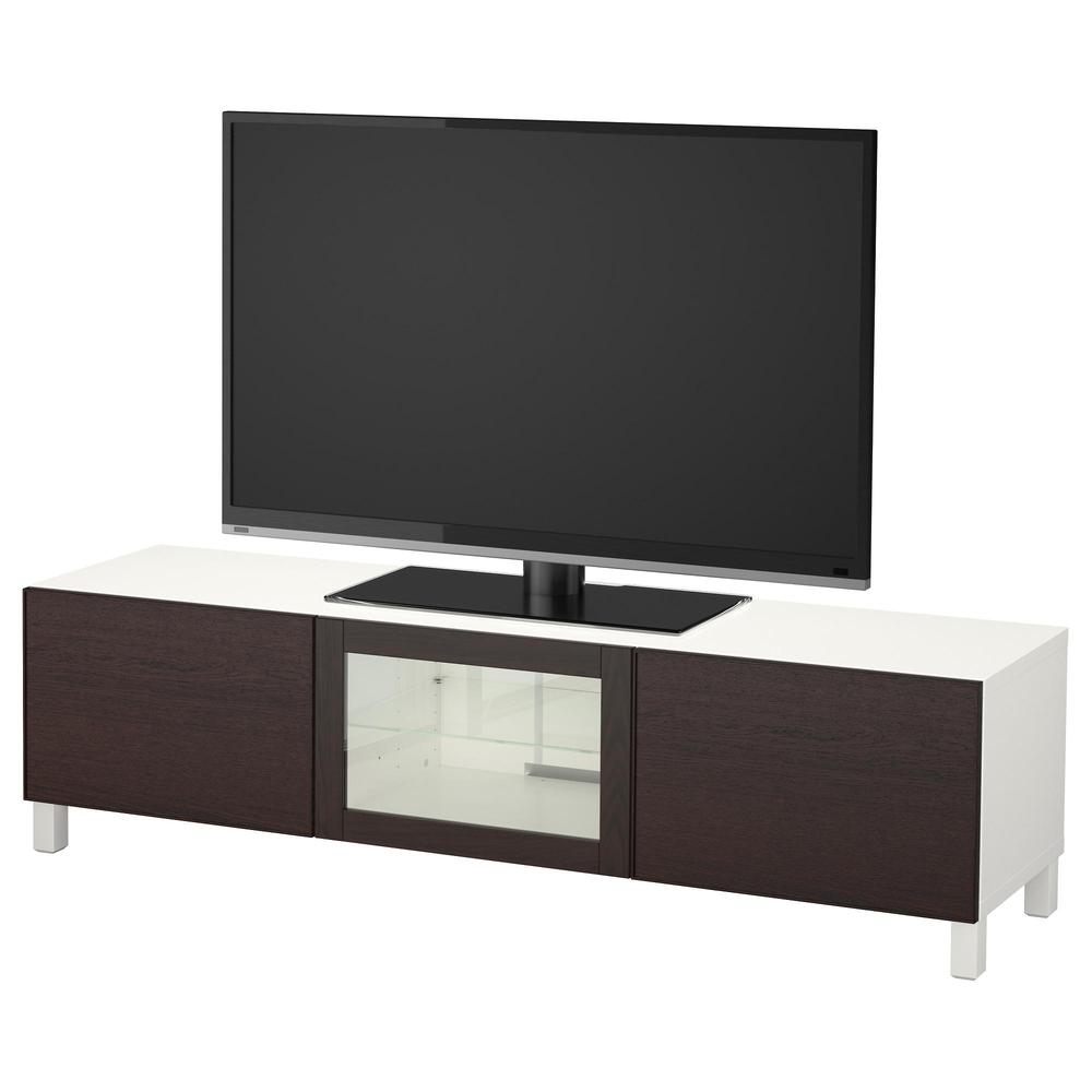 БЕСТО Тумба под ТВ с ящиками и дверцей - белый/Инвикен черно-коричневый прозрачное стекло, направляющие ящика,нажимные 0.0/5 оценка (0 голосов)