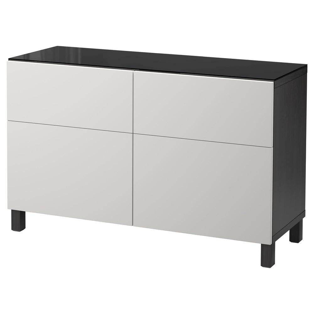 БЕСТО Комбинация для хранения с ящиками - черно-коричневый/Лаппвикен светло-серый, направляющие ящика, плавно закр