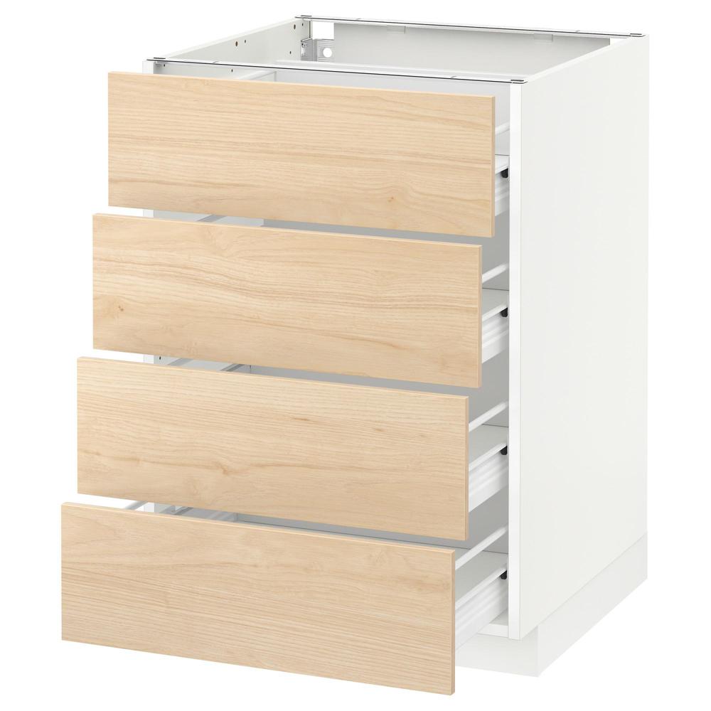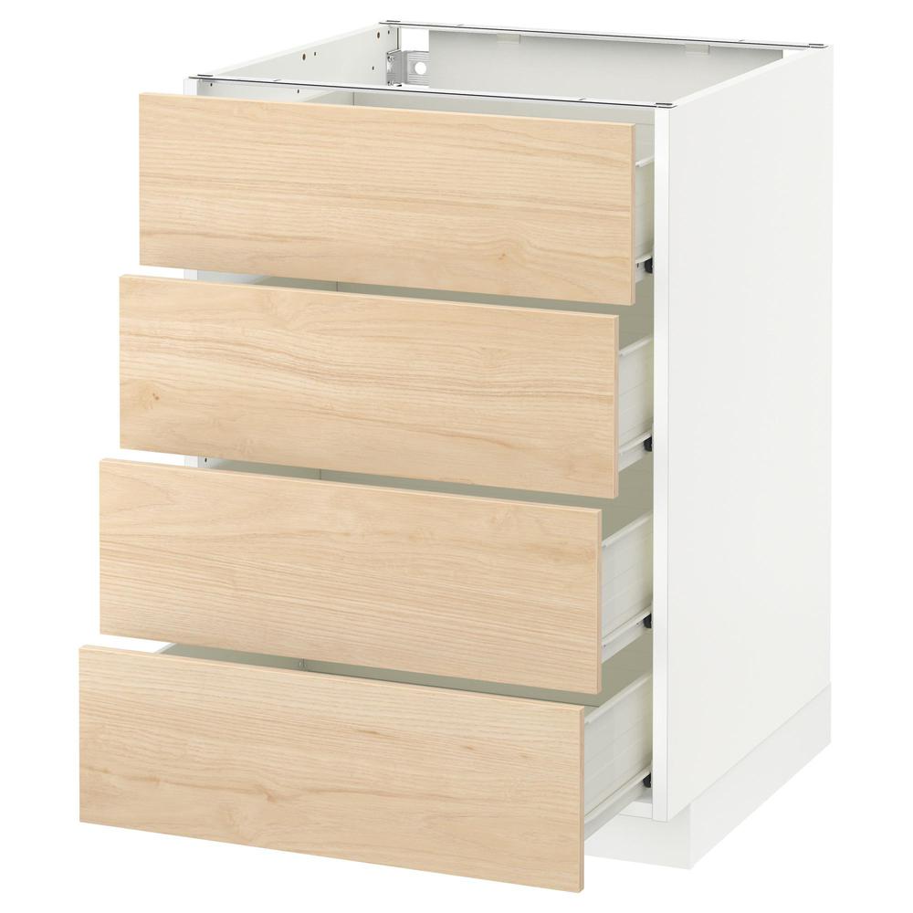 МЕТОД / ФОРВАРА Напольн шкаф 4 фронт панели/4 ящика - белый, Аскерсунд под светлый ясень, 60x60 см