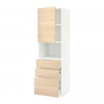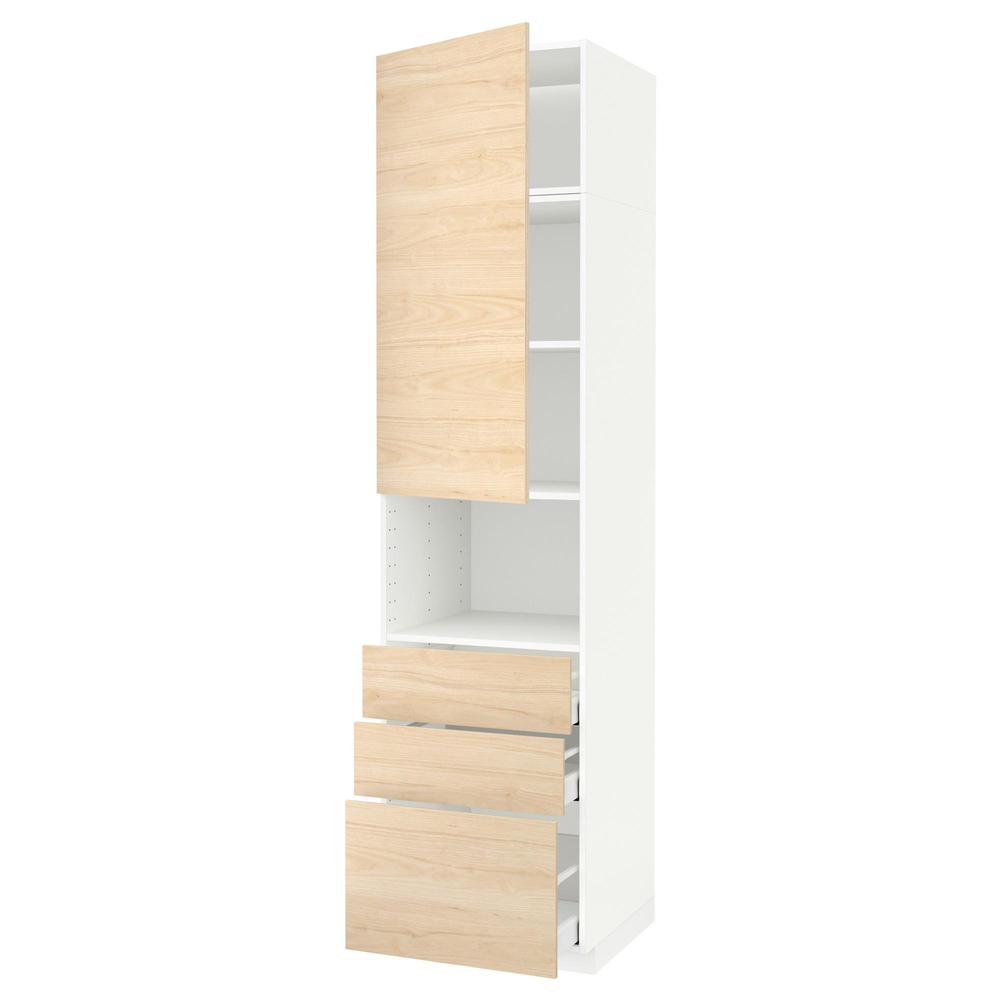 МЕТОД / МАКСИМЕРА Высокий шкаф д/СВЧ+дверца/3 ящика - белый, Аскерсунд под светлый ясень, 60x60x240 см