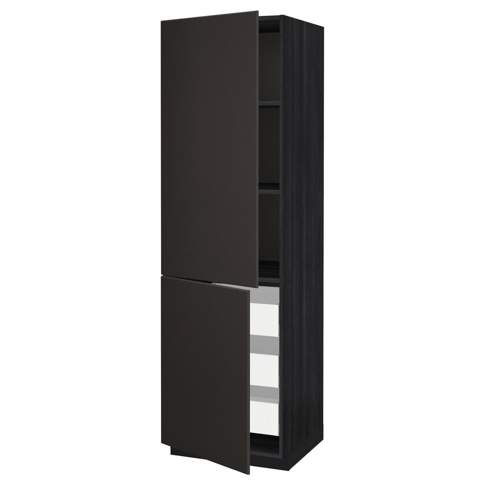 МЕТОД / МАКСИМЕРА Высокий шкаф+полки/3 ящика/2 дверцы - под дерево черный, Кунгсбакка антрацит, 60x60x200 см