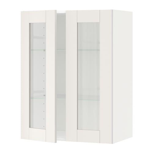 МЕТОД Навесной шкаф с полками/2 стекл дв - белый, Сэведаль белый, 60x80 см