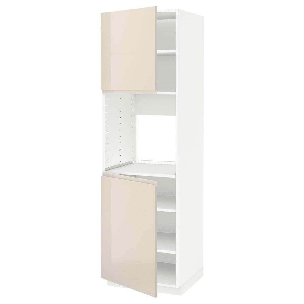 МЕТОД Высок шкаф д/духовки/2дверцы/полки - белый, Воксторп глянцевый светло-бежевый, 60x60x200 см
