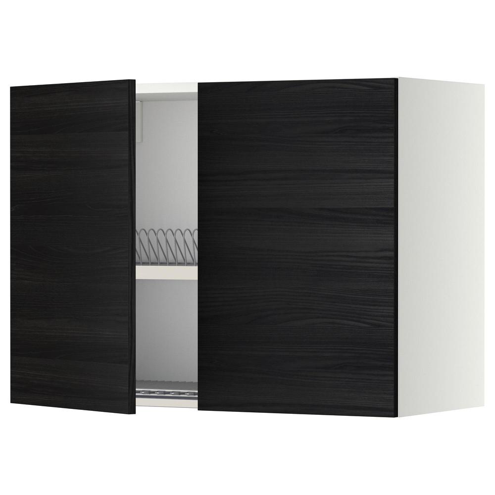 МЕТОД Навесной шкаф с посуд суш/2 дврц - белый, Тингсрид под дерево черный, 80x60 см