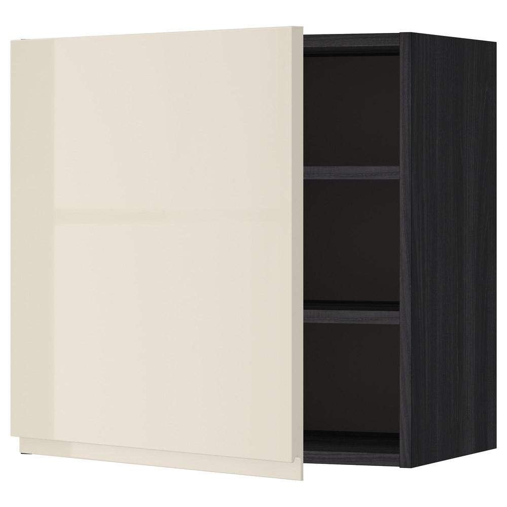 МЕТОД Шкаф навесной с полкой - под дерево черный, Воксторп глянцевый светло-бежевый, 60x60 см