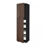МЕТОД / ФОРВАРА Высокий шкаф/2дверцы/4ящика - под дерево черный, Эдсерум под дерево коричневый, 40x60x220 см