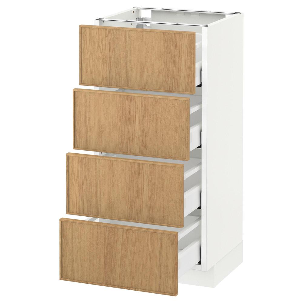 МЕТОД / МАКСИМЕРА Напольн шкаф 4 фронт панели/4 ящика - белый, Экестад дуб, 40x37 см