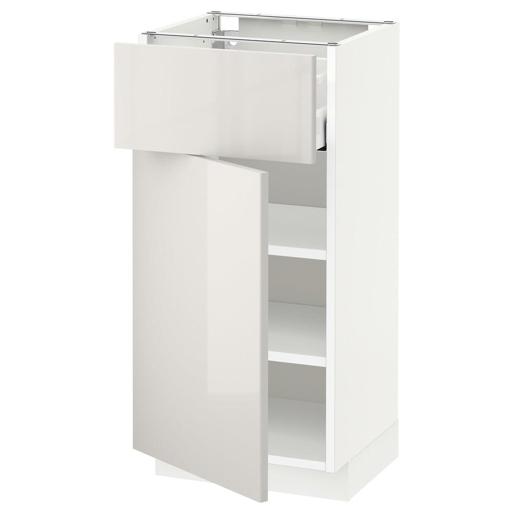 МЕТОД / МАКСИМЕРА Напольный шкаф с ящиком/дверью - белый, Рингульт глянцевый светло-серый, 40x37 см