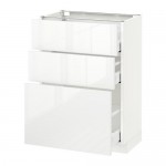 МЕТОД / МАКСИМЕРА Напольный шкаф с 3 ящиками - белый, Рингульт глянцевый белый, 60x37 см
