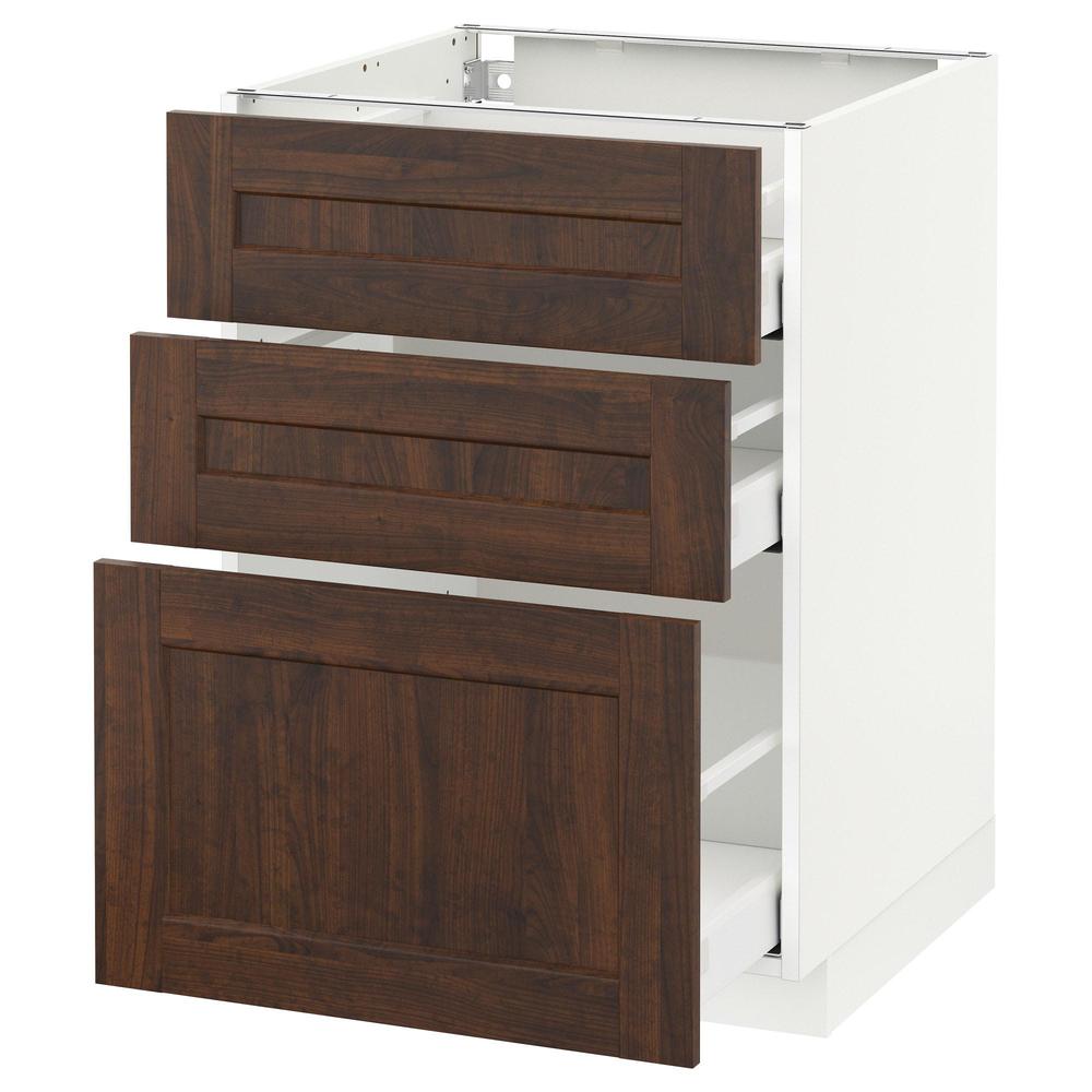 МЕТОД / МАКСИМЕРА Напольный шкаф с 3 ящиками - белый, Эдсерум под дерево коричневый, 60x60 см