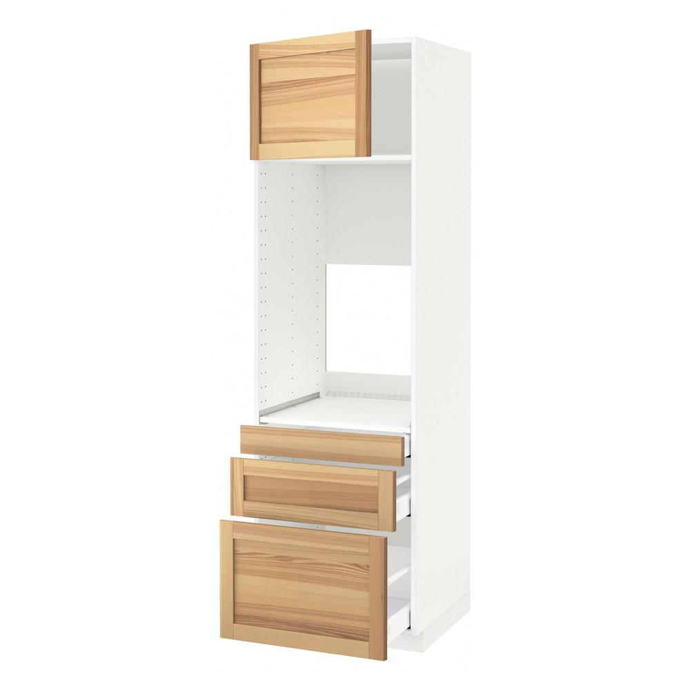 МЕТОД / МАКСИМЕРА Выс шкаф д/двойн духовки/3ящ/дверца - белый, Торхэмн естественный ясень, 60x60x200 см