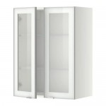 МЕТОД Навесной шкаф с полками/2 стекл дв - белый, Ютис матовое стекло/алюминий, 80x80 см