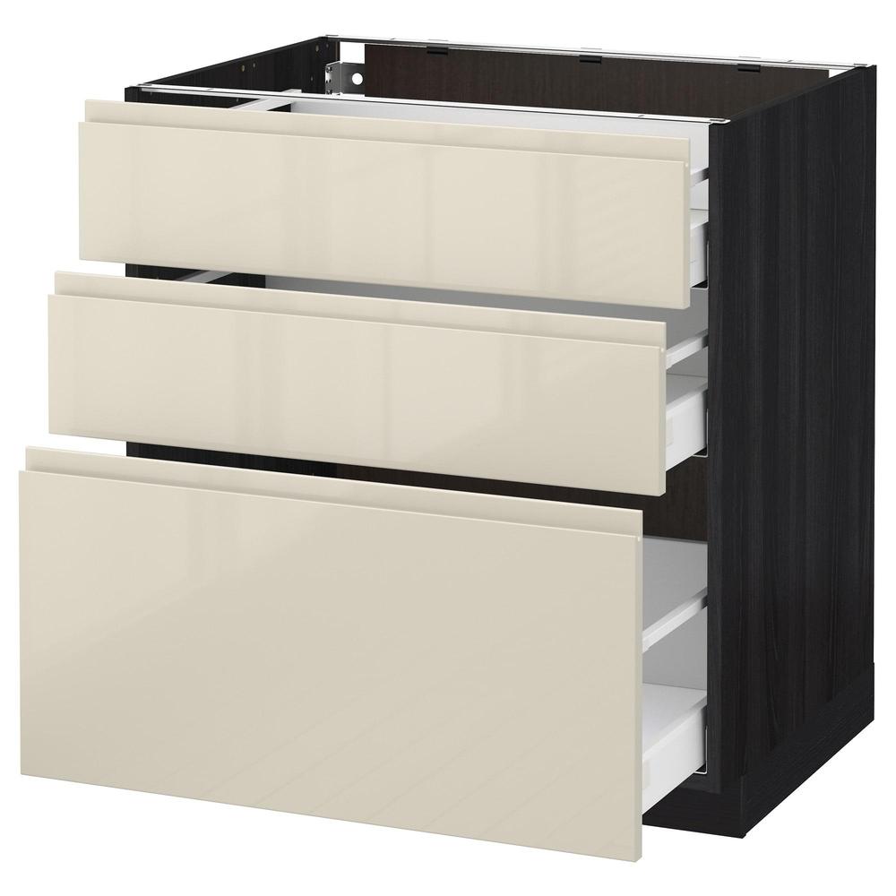 МЕТОД / МАКСИМЕРА Напольный шкаф с 3 ящиками - под дерево черный, Воксторп глянцевый светло-бежевый, 80x37 см 0.0/5 оценка (0 голосов)