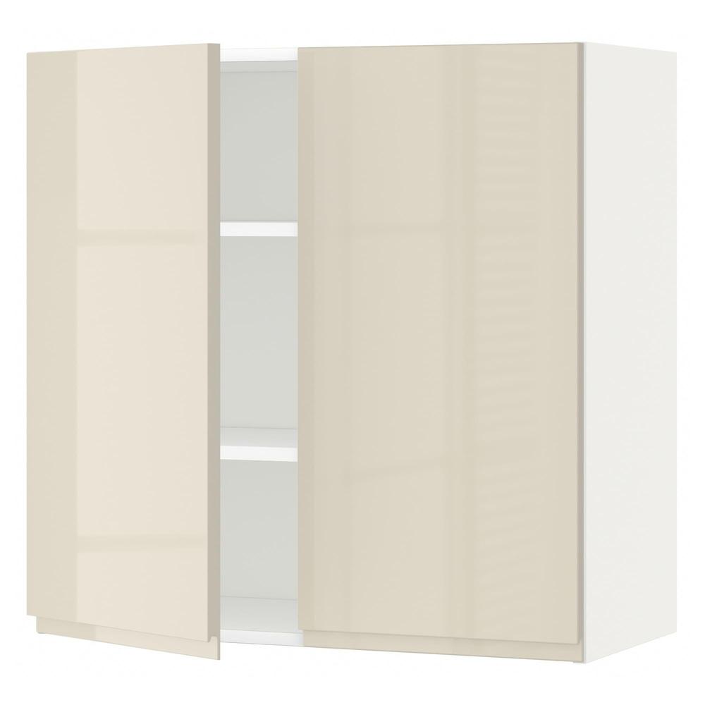 МЕТОД Навесной шкаф с полками/2дверцы - белый, Воксторп глянцевый светло-бежевый, 80x80 см