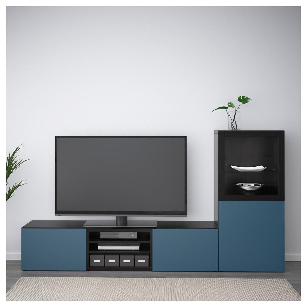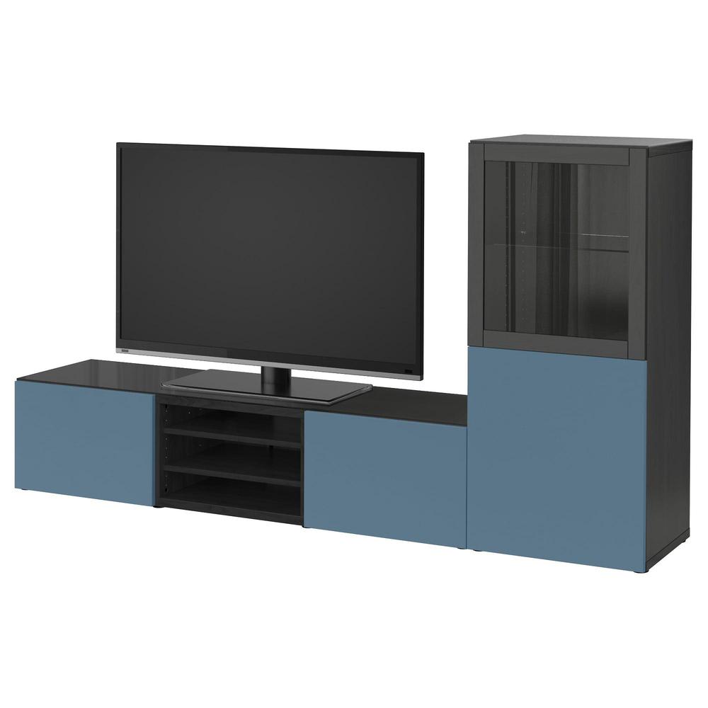 БЕСТО Шкаф для ТВ, комбин/стеклян дверцы - черно-коричневый Вальвикен/темно-синий прозрачное стекло, направляющие ящика, плавно закр 0.0/5 оценка (0 голосов)