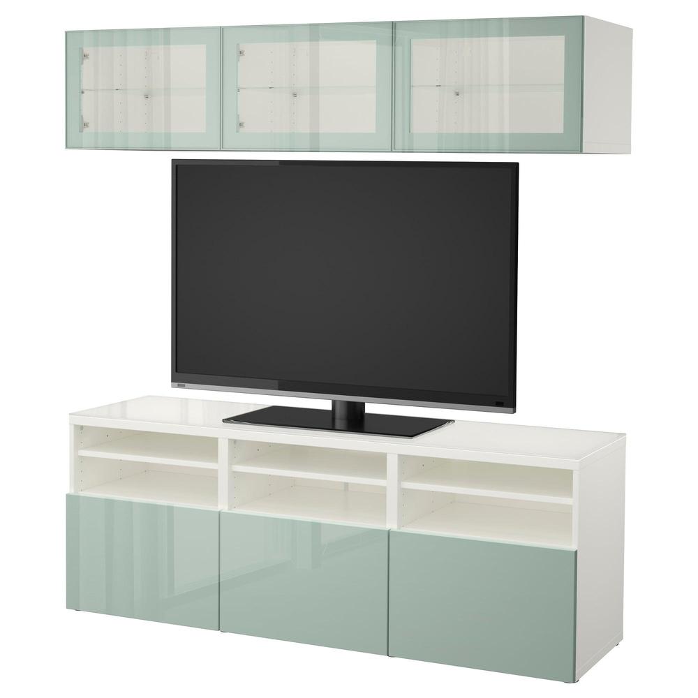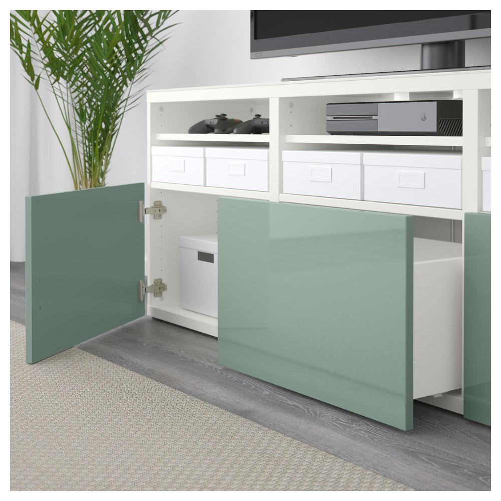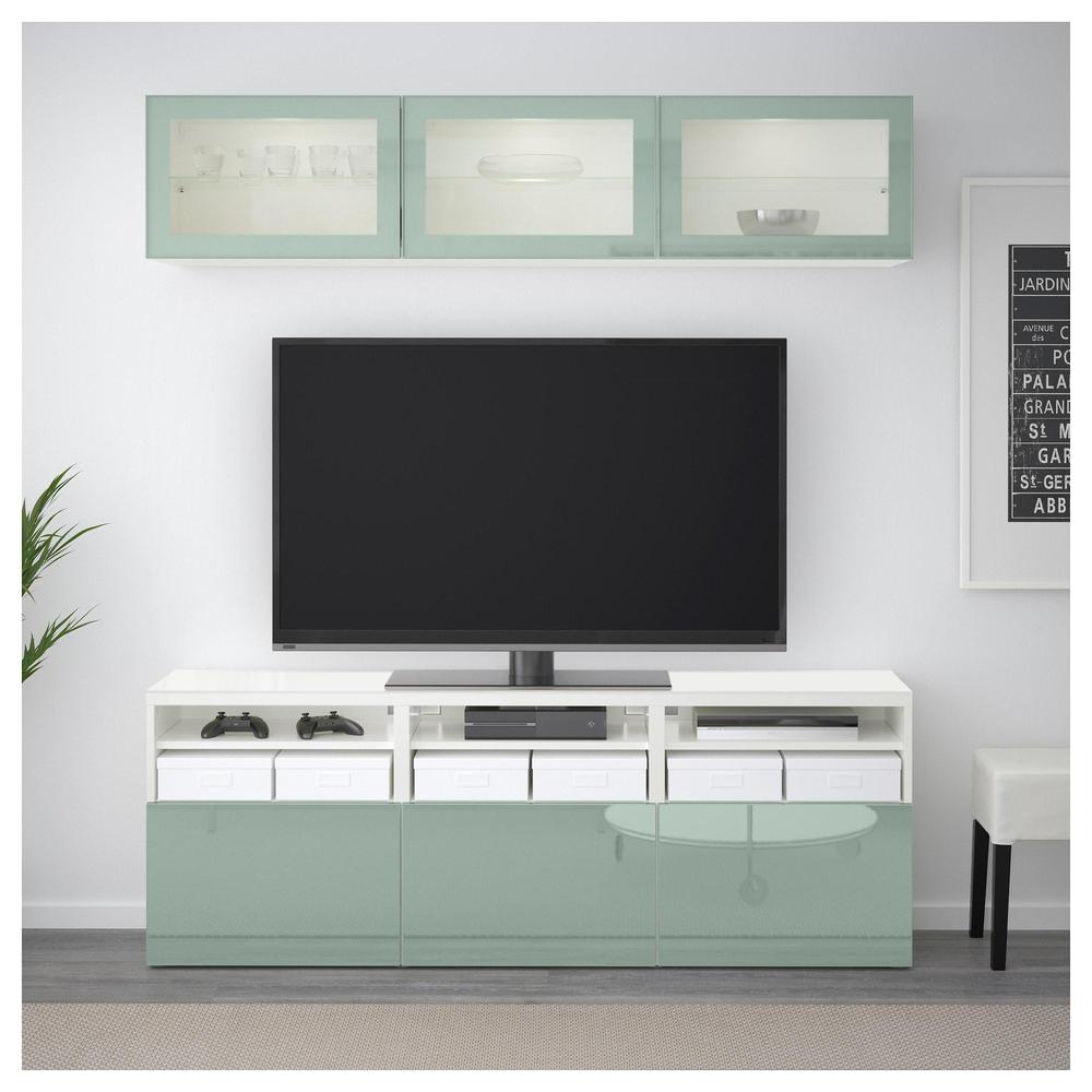 БЕСТО Шкаф для ТВ, комбин/стеклян дверцы - белый Сельсвикен/глянцевый/серо-зеленый светлый прозрачное стекло, направляющие ящика,нажимные 0.0/5 оценка (0 голосов)