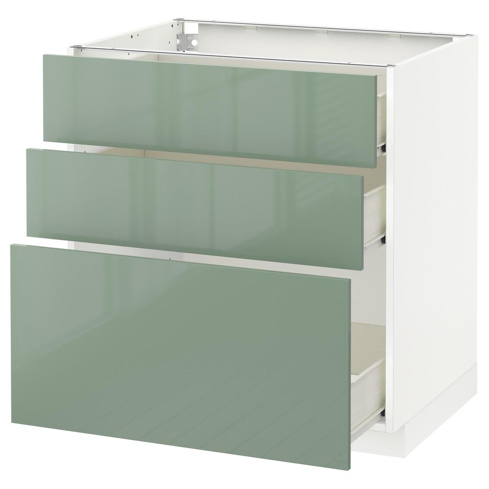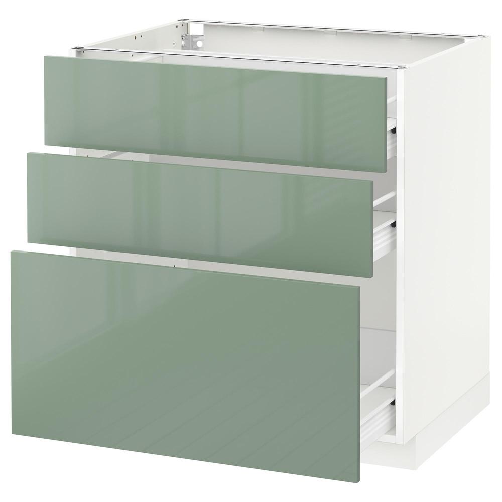 МЕТОД / ФОРВАРА Напольный шкаф с 3 ящиками - белый, Калларп глянцевый светло-зеленый, 80x60 см