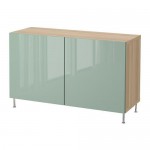 БЕСТО Комбинация для хранения с дверцами - под беленый дуб/Сельсвикен глянцевый/серо-зеленый светлый