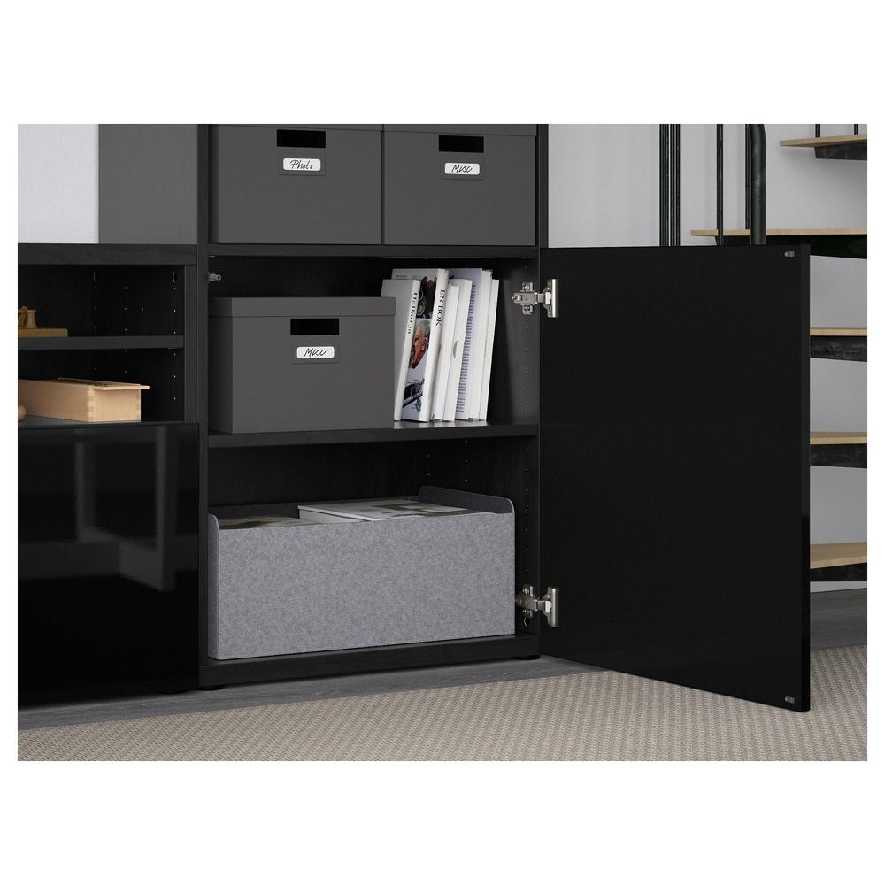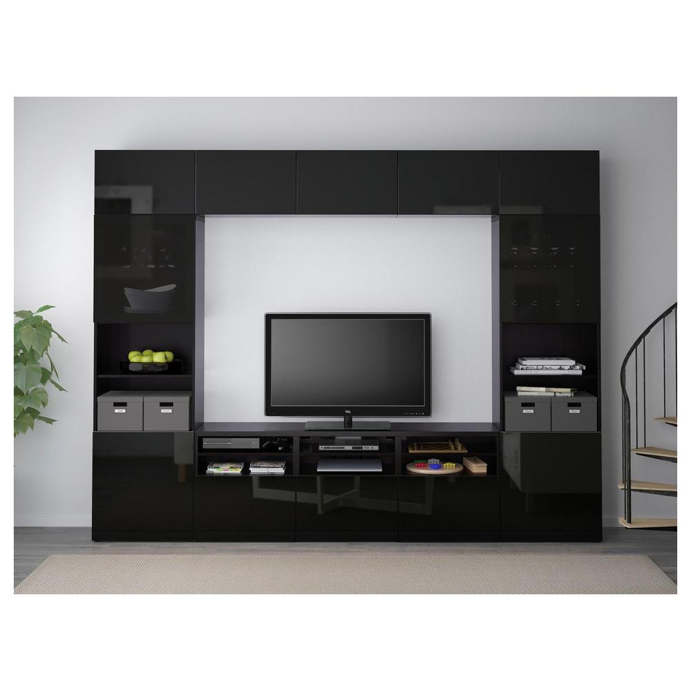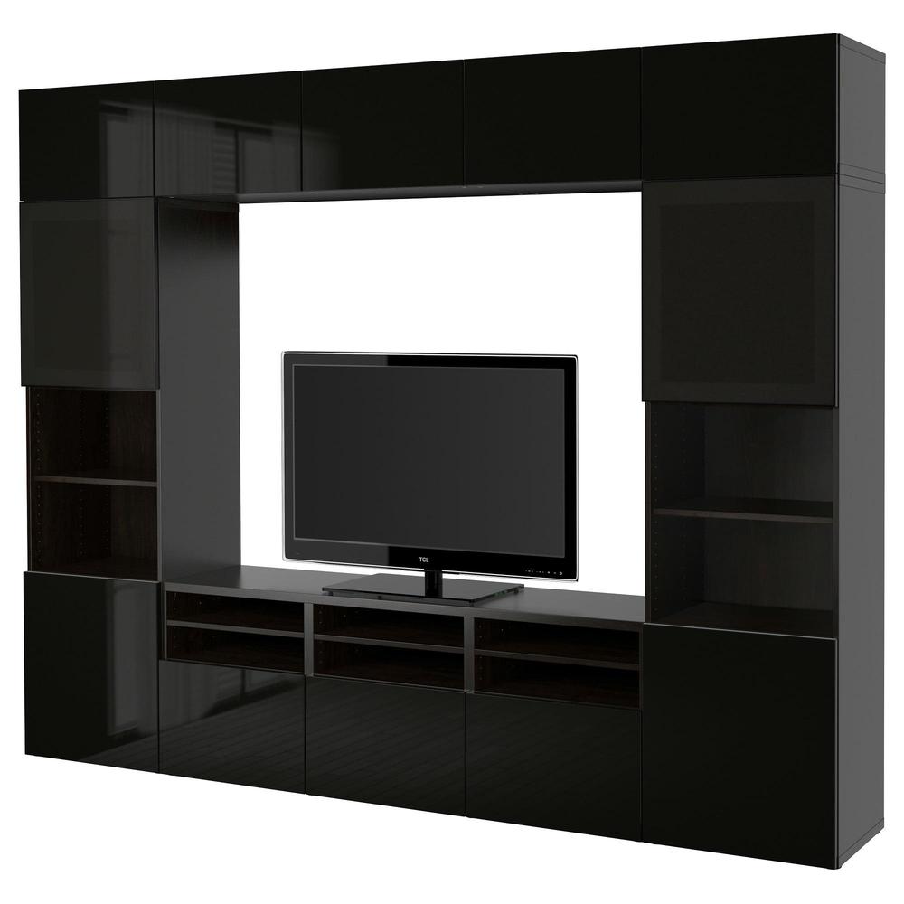 БЕСТО Шкаф для ТВ, комбин/стеклян дверцы - черно-коричневый/Сельсвикен глянцевый/черный дымчатое стекло, направляющие ящика,нажимные