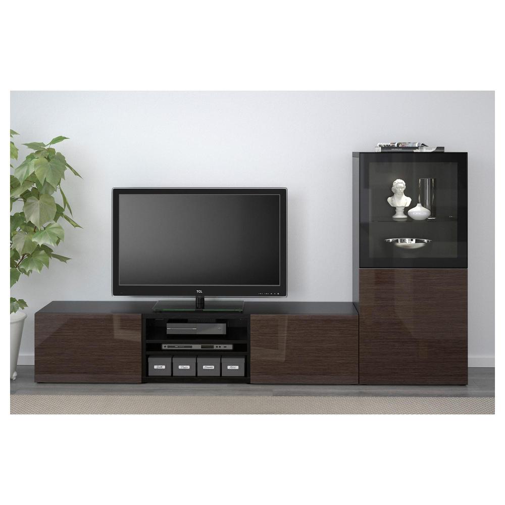 БЕСТО Шкаф для ТВ, комбин/стеклян дверцы - черно-коричневый/Сельсвикен глянцевый/коричневый прозрач стекло, направляющие ящика, плавно закр 0.0/5 оценка (0 голосов)