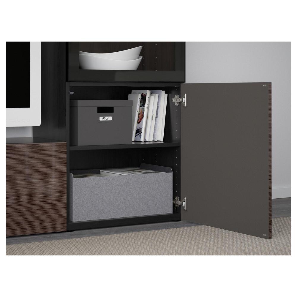 БЕСТО Шкаф для ТВ, комбин/стеклян дверцы - черно-коричневый/Сельсвикен глянцевый/коричневый прозрач стекло, направляющие ящика, плавно закр
