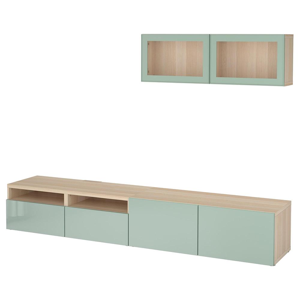 БЕСТО Шкаф для ТВ, комбин/стеклян дверцы - под беленый дуб Сельсвикен/глянцевый/серо-зеленый светлый прозрачное стекло, направляющие ящика, плавно закр 0.0/5 оценка (0 голосов)