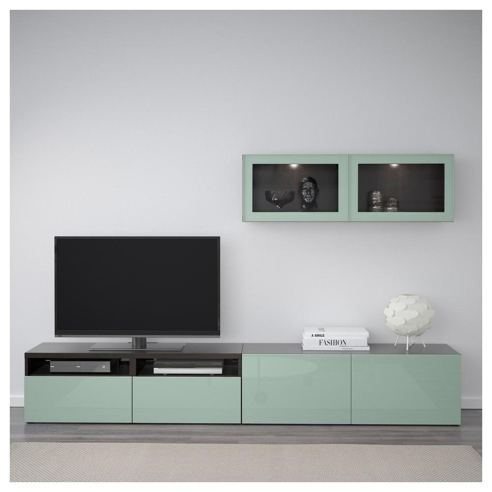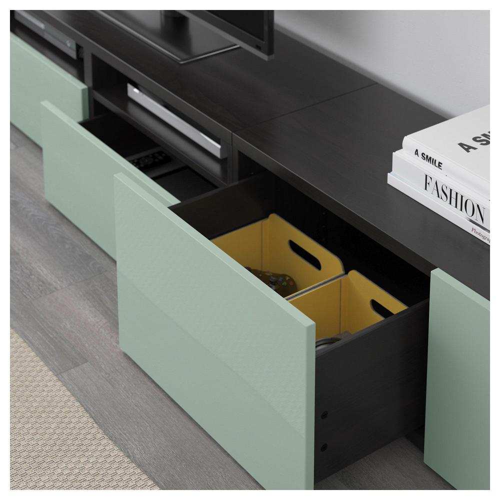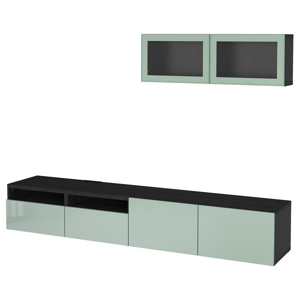 БЕСТО Шкаф для ТВ, комбин/стеклян дверцы - черно-коричневый Сельсвикен/глянцевый/серо-зеленый светлый прозрачное стекло, направляющие ящика, плавно закр 0.0/5 оценка (0 голосов)