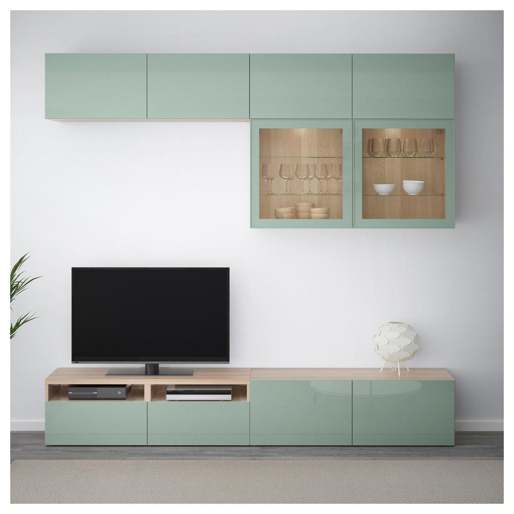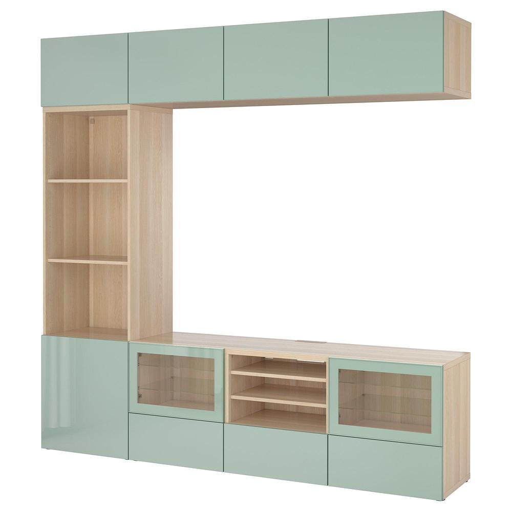 БЕСТО Шкаф для ТВ, комбин/стеклян дверцы - под беленый дуб Сельсвикен/глянцевый/серо-зеленый светлый прозрачное стекло, направляющие ящика, плавно закр 0.0/5 оценка (0 голосов)