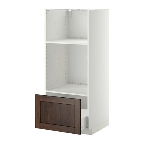 МЕТОД / ФОРВАРА Высокий шкаф с ящиком д/духовки/СВЧ - белый, Эдсерум под дерево коричневый