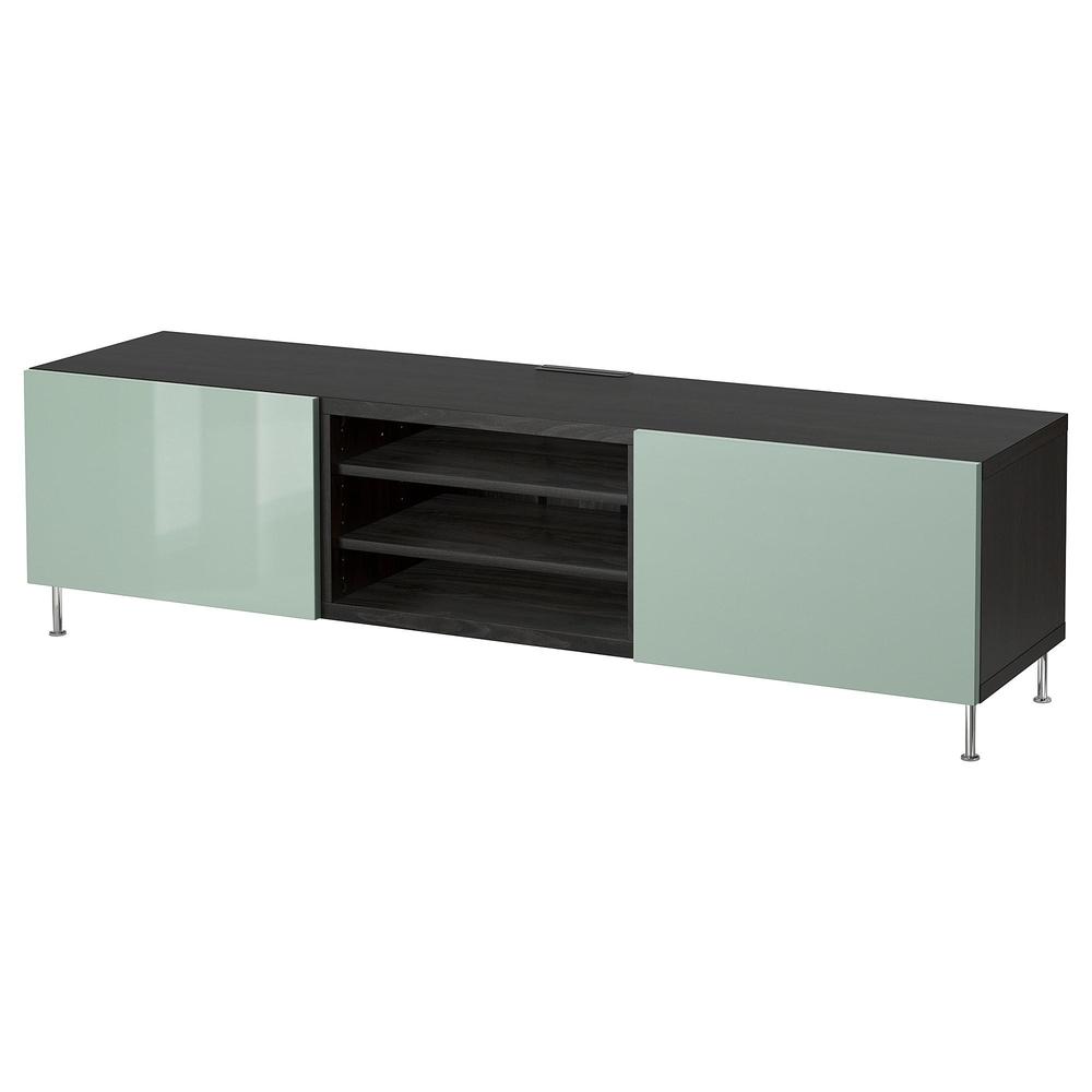 БЕСТО Тумба д/ТВ с ящиками - черно-коричневый глянцевый/серо-зеленый светлый, направляющие ящика,нажимные