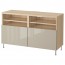 БЕСТО Тумба под ТВ, с дверцами - под беленый дуб глянцевый/бежевый