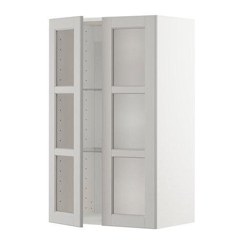 МЕТОД Навесной шкаф с полками/2 стекл дв - белый, Лерх светло-серый, 60x100 см