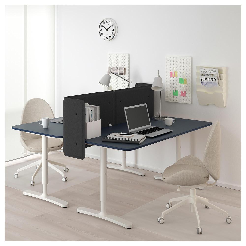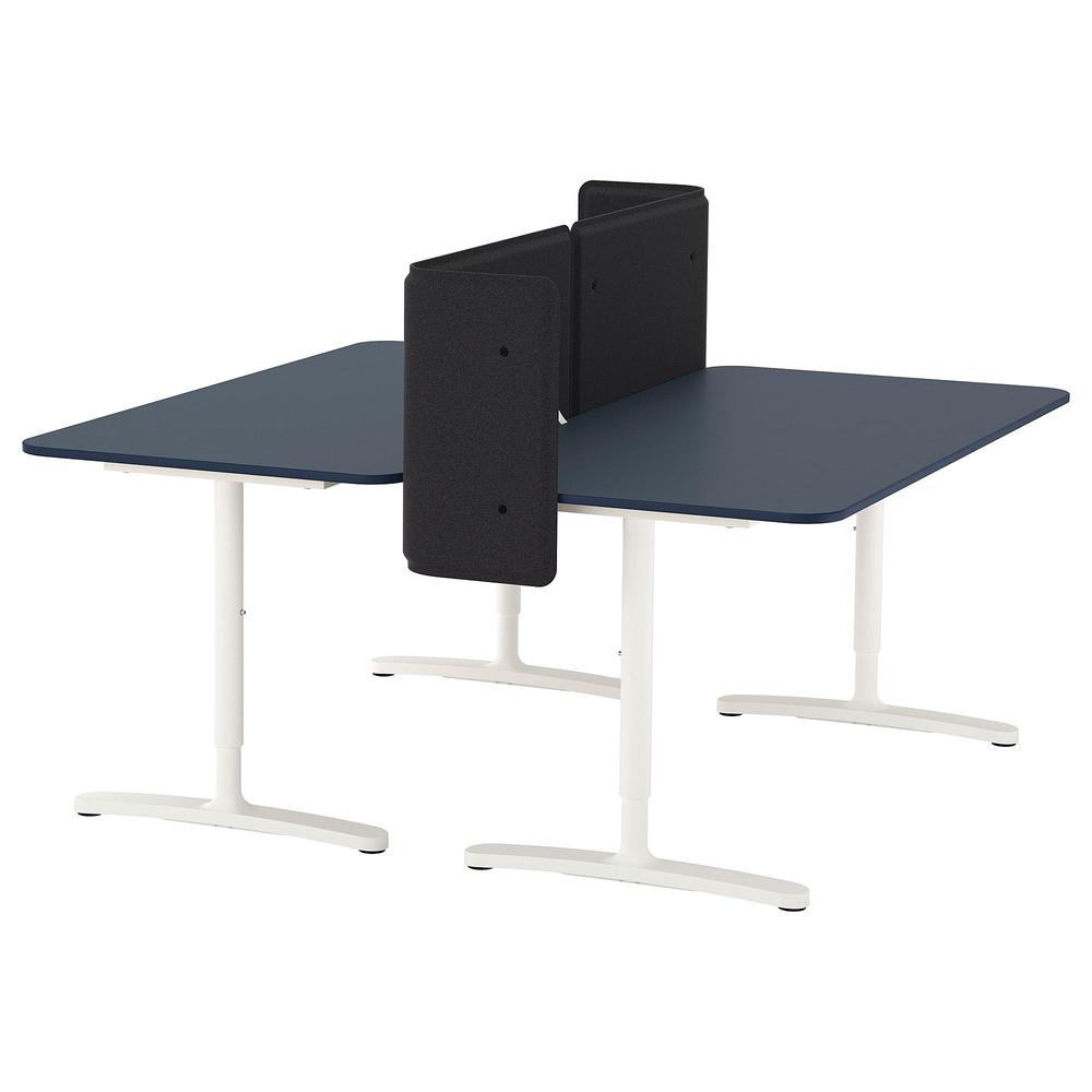 БЕКАНТ Стол с экраном - линолеум синий/белый