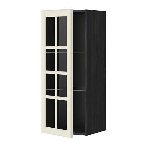 МЕТОД Навесной шкаф с полками/стекл дв - под дерево черный, Будбин белый с оттенком, 40x100 см