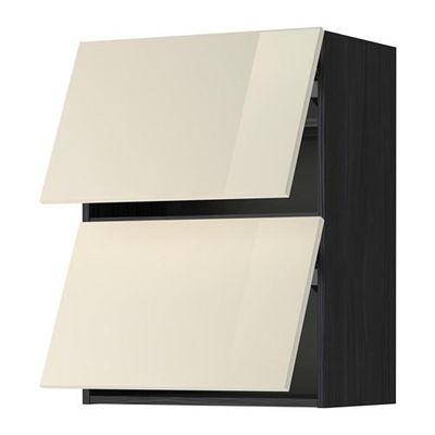МЕТОД Навесной шкаф/2 дверцы, горизонтал - 60x80 см, Рингульт глянцевый кремовый, под дерево черный