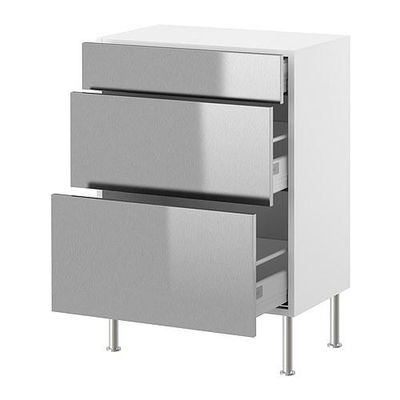 ФАКТУМ Напольный шкаф с 3 ящиками - Рубрик нержавеющ сталь, 80x37 см