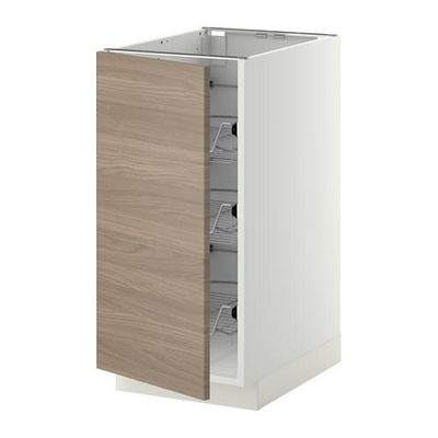 МЕТОД Напольный шкаф с проволочн ящиками - 40x60 см, Брокхульт под грецкий орех светло-серый, белый