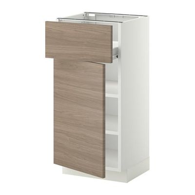 МЕТОД / ФОРВАРА Напольн шкаф с полкой/ящиком/дверью - белый, Брокхульт под грецкий орех светло-серый, 40x37 см