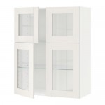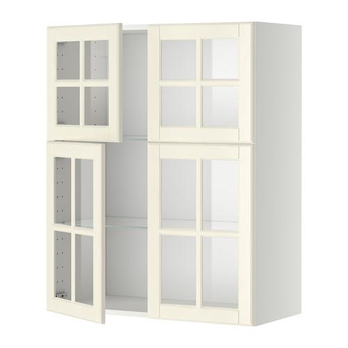 МЕТОД Навесной шкаф с полками/4 стекл дв - белый, Будбин белый с оттенком