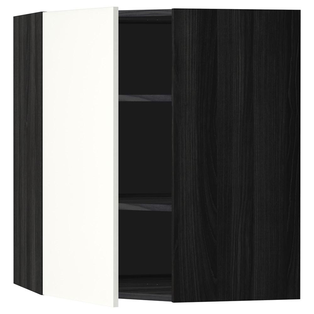МЕТОД Угловой навесной шкаф с полками - под дерево черный, Хэггеби белый, 68x80 см