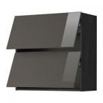 МЕТОД Навесной шкаф/2 дверцы, горизонтал - 60x80 см, Рингульт глянцевый серый, под дерево черный
