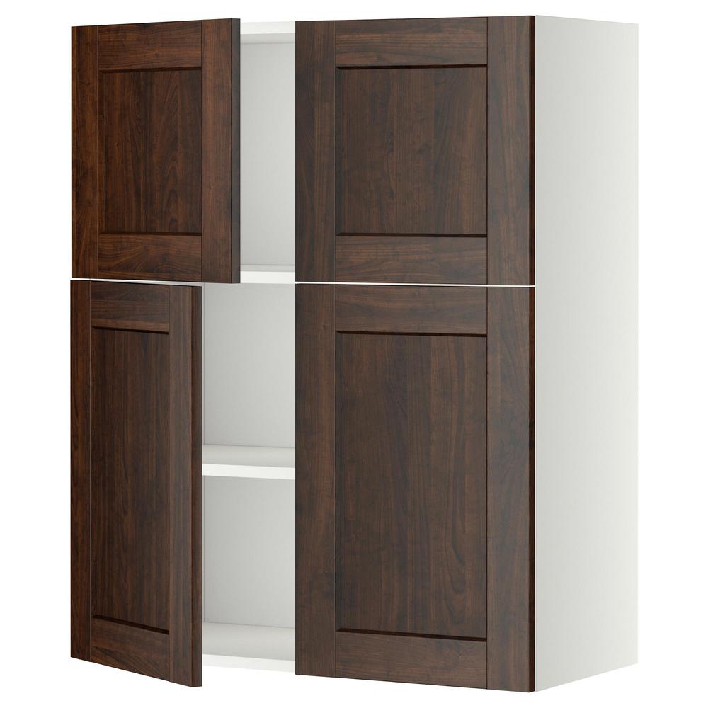 МЕТОД Навесной шкаф с полками/4дверцы - белый, Эдсерум под дерево коричневый