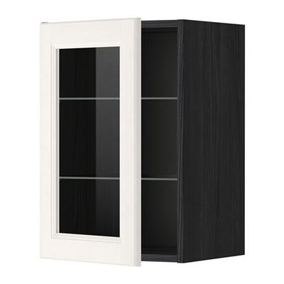 МЕТОД Навесной шкаф с полками/стекл дв - 40x60 см, Лаксарби белый, под дерево черный