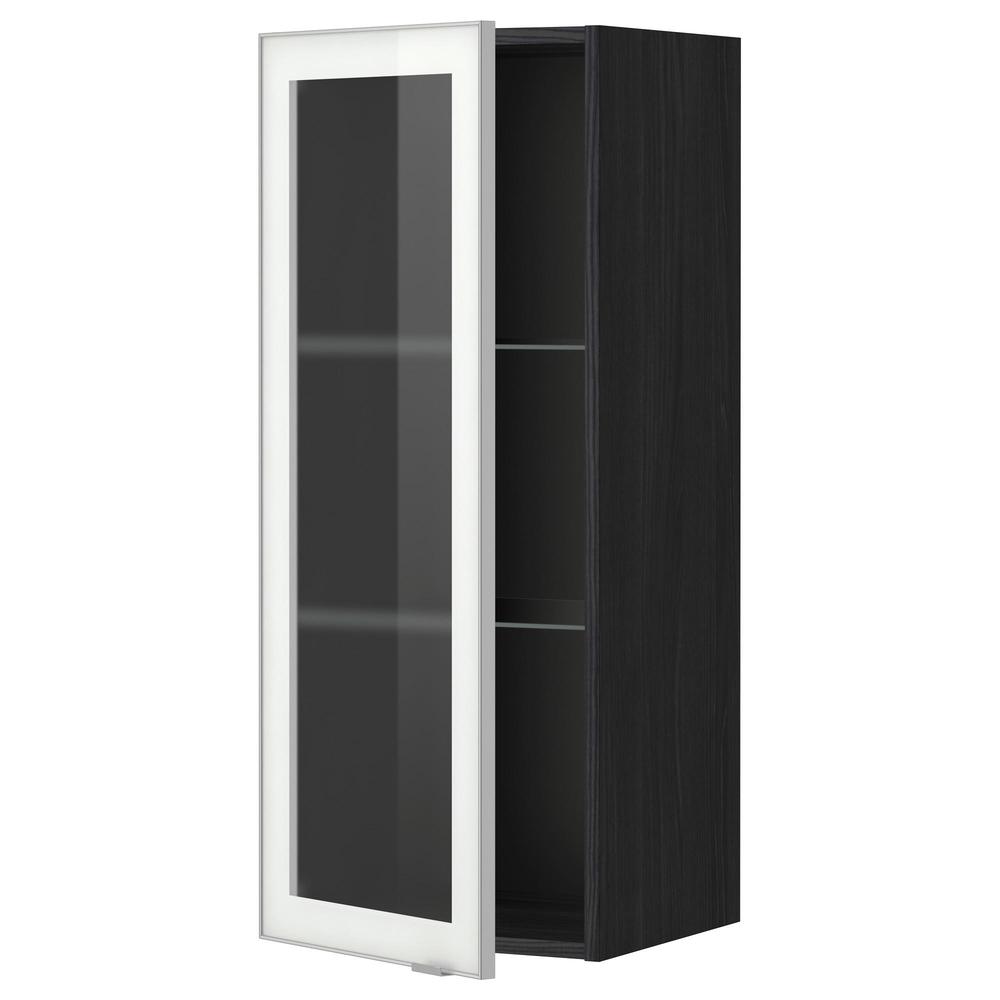 МЕТОД Навесной шкаф с полками/стекл дв - под дерево черный, Ютис матовое стекло/алюминий, 40x100 см