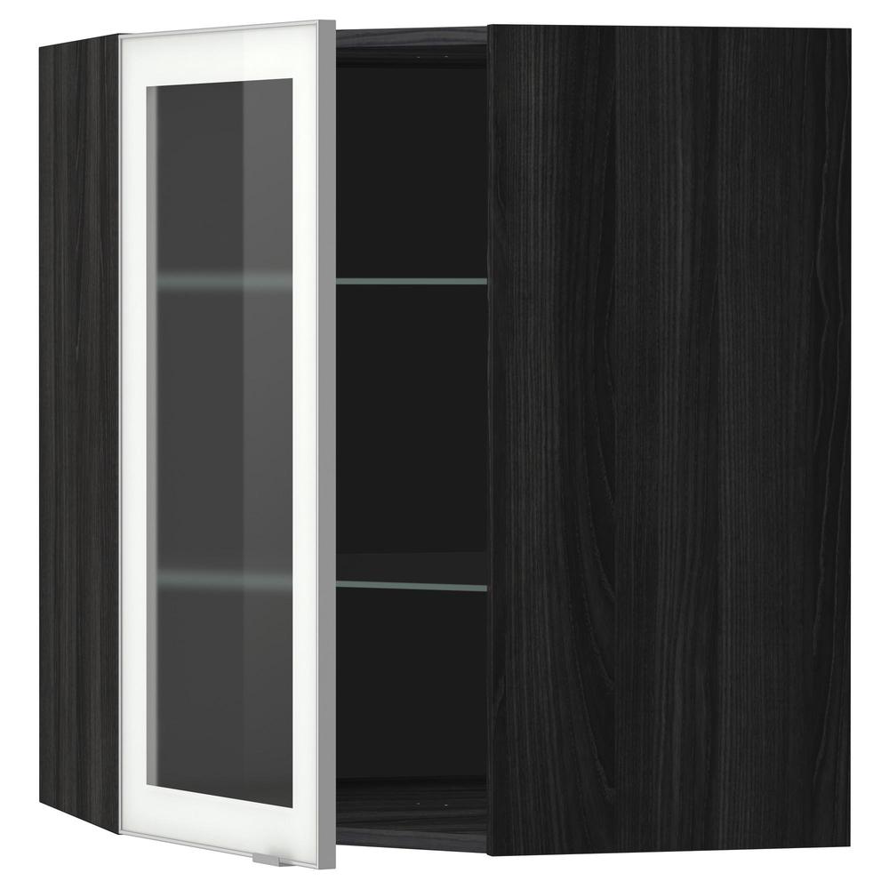 МЕТОД Углов навесн шк с полками/сткл дв - под дерево черный, Ютис матовое стекло/алюминий, 68x80 см